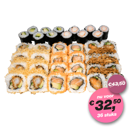 (36 st.) 8 California Salmon · 8 Crunchy Roll · 8 Tempura Ebi · 6 Kappa maki · 6 Surimi maki